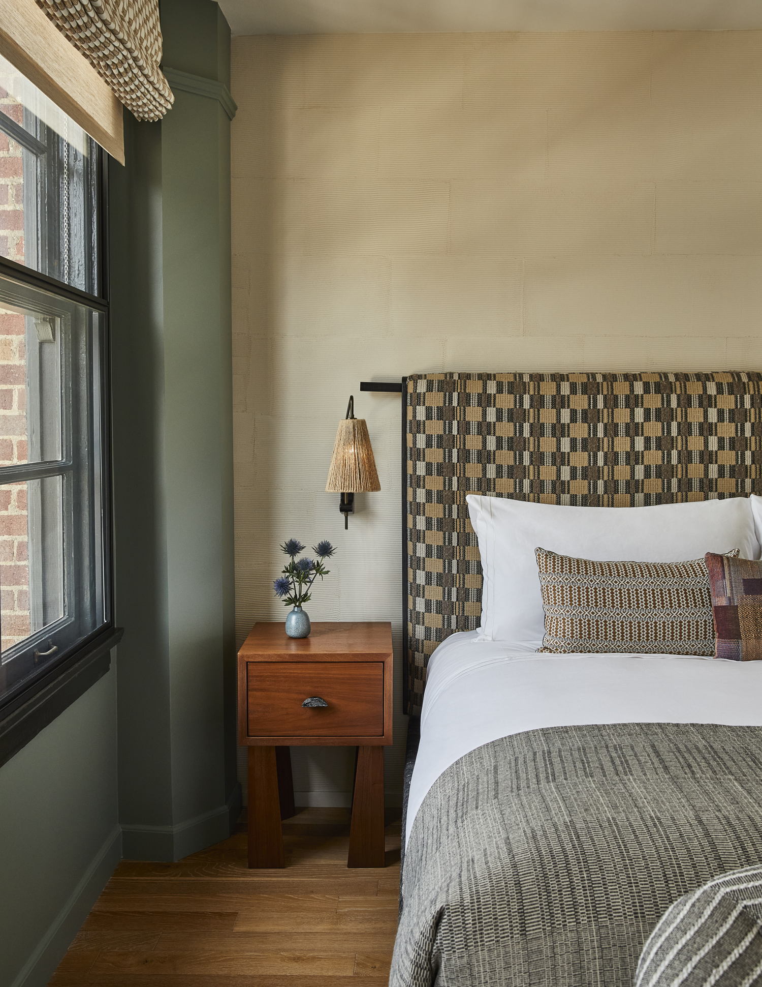 Drawing on the landmark’s centennial lifetime and rich history, Wearstler designs each room and suite to be a transportive experience with a deeply residential feel, layered with carefully selected custom furnishings with meaningful art and handicrafts created exclusively by local artists. A moody paintbox palette of charcoals, mauves, dusty blues, ecrus, and umbers flush over fine-combed plaster finished walls and original architectural mouldings.